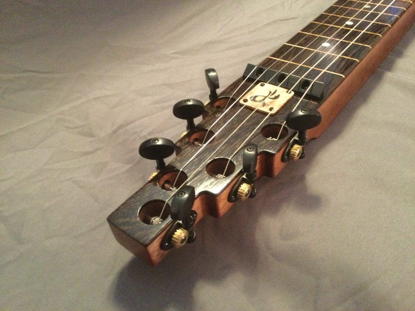 22.5″ scale, 24 inlaid maple fret markers, top access tuning keys for ease of tuning, parallel strings – no taper,